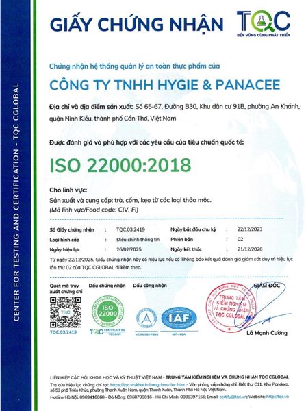Công ty TNHH Hygie & Panacee là đơn vị chuyên gia sản xuất các sản phẩm từ nông sản - thảo dược - dược liệu. Chúng tôi có nhiều nhóm sản phẩm như trà hòa tan thảo dược, tinh dầu, nhang thảo dược... Trong đó Trà thảo dược Hygie là sản phẩm chính, sản phẩm chủ lực của Công ty. Hiện Công ty có 15 sản phẩm Trà thảo dược đáp ứng nhiều nhu cầu chăm sóc sức khỏe khác nhau của khách hàng, như trà cho người bị mất ngủ, Trà hỗ trợ giảm cân, Trà tăng cường sức đề kháng... Các sản phẩm này được phát triển từ dự án "Khai thác giá trị dược liệu từ nông sản", dự án đạt nhiều giải thưởng về đổi mới sáng tạo. Hygie & Panacee tự hào là thương hiệu đạt các tiêu chuẩn ISO, FDA, OCOP 4 sao, và được vinh danh Hàng Việt Nam Chất Lượng Cao 2025.