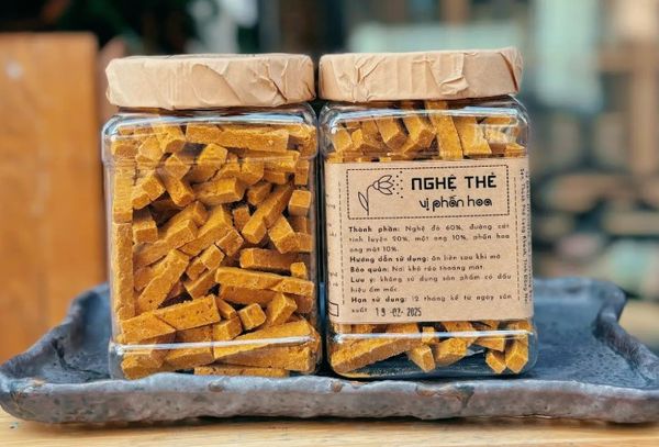 MỨT NGHỆ THẺ: với nguyên liệu bản địa và các thành phần tự nhiên như Nghệ đỏ, phấn hoa, đường cát, mật ong