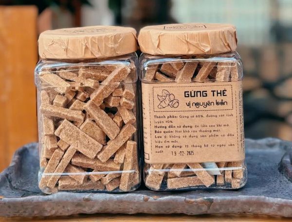MỨT GỪNG THẺ: Với thành phần nguyên chất và không chất bảo quản: Gừng sẻ, đường cát, chanh muối, mật ong. Đa dạng sự lựa chọn với 3 vị thơm ngon: nguyên bản, chanh muối, mật ong.